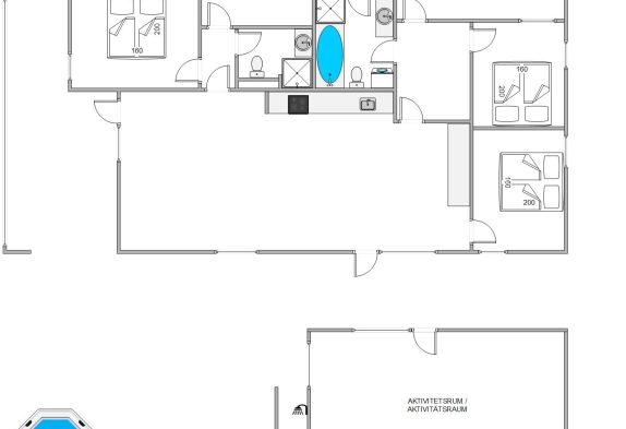 Im Bjerregårdsvej 470 liegt dieses wunderschöne, moderne Aktivitätshaus, wo bis zu 8 Personen Platz für einen unvergesslichen Urlaub finden. Das im Jahr 2021 neugebaute Ferienhaus lädt euch mit seiner hellen und modernen Einrichtung ein, traumhafte Ferientage nur 100 m vom Strand entfernt zu verbringen. Ausgestattet mit Aktivitätsraum mit Billard, Sauna und großem Außenbereich mit Außendusche und Außenwhirlpool lässt dieses Ferienhaus keine Wünsche offen.