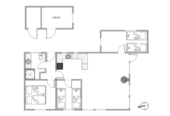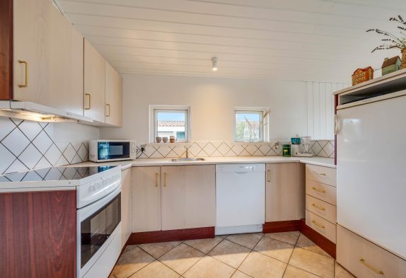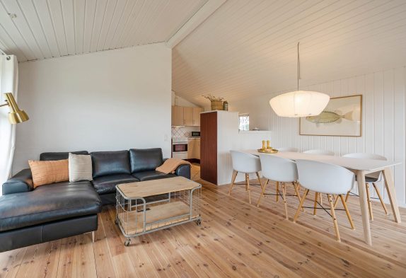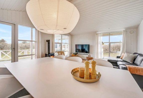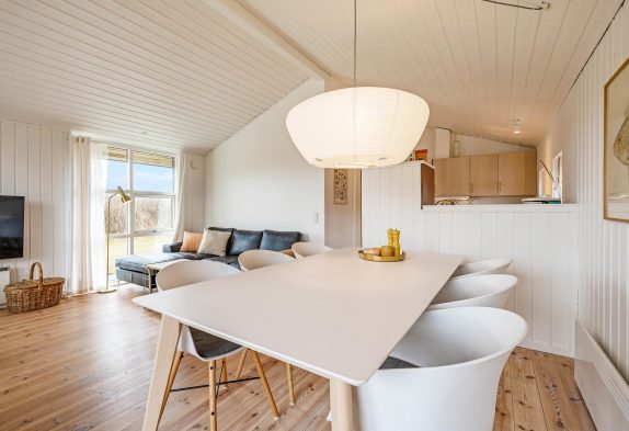 Dieses Ferienhaus sorgt für Entspannung und Gemütlichkeit. Bereits beim Betreten des Ferienhauses empfängt euch sofort die gemütliche Atmosphäre. Die großen Fenster im Wohnzimmer sorgen für viel Licht und bieten einen schönen Blick in den Garten. Die Küche ist mit dem Wohnzimmer verbunden, sodass die ganze Familie gemeinsame Zeit genießen kann, selbst wenn einer auf dem Sofa relaxt, während ein anderer das Abendessen zubereitet.