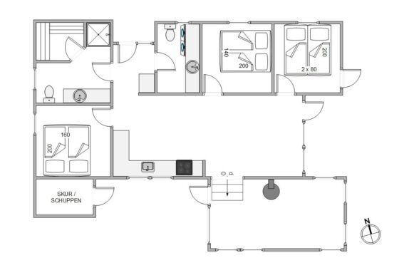 Die 3 Schlafzimmer sind jeweils mit Doppelbetten ausgestattet und insgesamt können hier auf Lyngbovej 14 bis zu 6 Personen nächtigen. Zur Freude der Kinder gibt es einen Hems – einen kuscheligen Bereich unter dem Dach – wo es urgemütlich ist, um ein wenig für sich zu sein. Es gibt 1 Badezimmer sowie 1 zusätzliches Gäste-WC. Sowohl eine Waschmaschine, ein Trockner aber auch ein Geschirrspüler greifen euch bei der anstehenden Hausarbeit unter die Arme, sodass mehr Zeit für Erholung und Entspannung bleibt. Alternativ zum Kamin steht euch eine moderne Wärmepumpe zur Verfügung, welche energiesparend für die von euch gewünschte Temperatur im Ferienhaus sorgt.