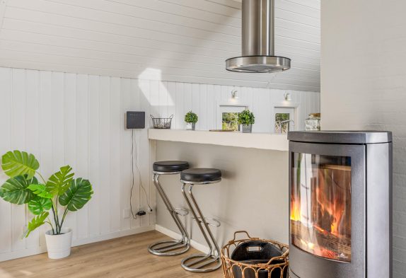 Im Ferienhaus erwartet euch eine gemütliche Einrichtung mit bequemen Möbeln, in denen ihr euch in eurem Urlaub wohlfühlen könnt. Wie es sich für ein echtes Ferienhaus gehört, gibt es im Wohnzimmer einen Holzofen, der die Urlaubsatmosphäre vervollständigt und schöne Wärme im Ferienhaus verbreitet.