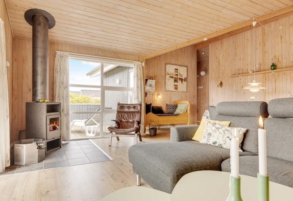 Gemütliche und einladende Einrichtung mit Kaminofen und Sauna