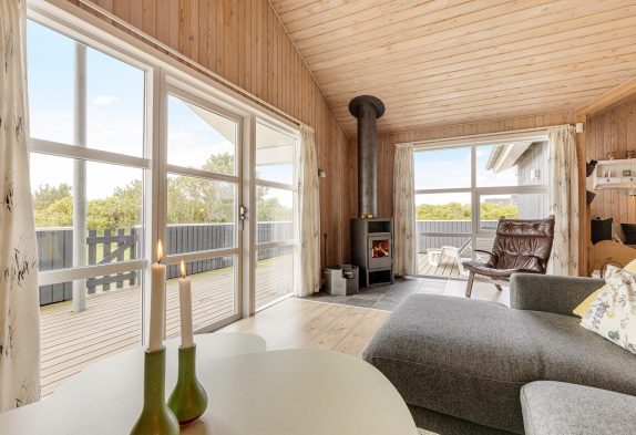 Weniger als einen Kilometer vom schönen Nordseestrand entfernt, liegt dieses gemütliche Ferienhaus am Jafdalvej 79 in Vejers Strand. Das Ferienhaus bietet Platz für 6 Personen, die hier einen schönen Urlaub verbringen können, mit Kaminofen und Entspannung in der Sauna. Habt ihr einen Hund, ist der hier auch herzlich willkommen.