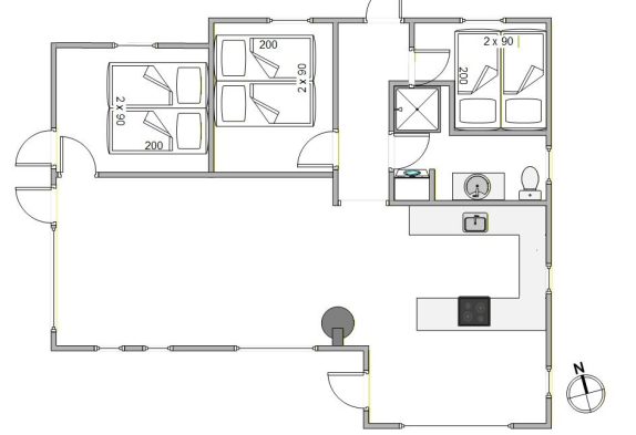 Das Ferienhaus hat 78 m2 und hat insgesamt 3 gute Schlafräume, wobei in 2 Räumen Doppelbetten stehen und im Dritten befinden sich 2 Einzelbetten. Alle Betten sind ausgetauscht in 2022. Morgens nach dem Aufstehen bekommt keiner kalte Füsse, denn in dem Badezimmer des Ferienhauses ist eine Fussbodenheizung.