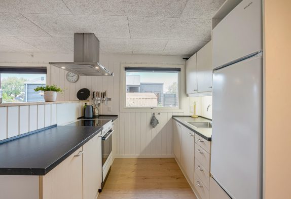 Mit einer großzügigen Fläche von 69m2 bietet das Ferienhaus im Horsfold 95 ausreichend Platz für bis zu 4 Personen + 1 Hund. Im Mittelpunkt des Ferienhauses befindet sich die offene Wohnküche, die harmonisch in das Wohn- und Esszimmer übergeht. Diese offene Gestaltung schafft eine luftige und einladende Atmosphäre, die ideal für gemeinsame Mahlzeiten und gesellige Abende ist. Die Küche ist mit allem ausgestattet, was für den Alltag benötigt wird, einschließlich einer Spülmaschine, welche den Komfort erhöht.