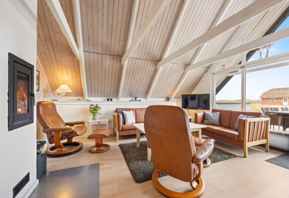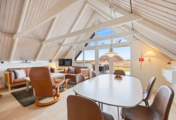Das Reetdachhaus im Nordsø Ferievej 37 wurde im Jahr 2021 durch eine liebevolle Hand renoviert und eingerichtet. Wer hier seine nächsten Ferien verbringt, wird sich wohlfühlen und viele gemütliche Stunden verbringen. Wohnzimmer und Küche teilen sich einen Raum und die offene Decke und eine Fensterfront, die bis hoch in den Giebel reicht, sorgt hier für reichlich Licht.