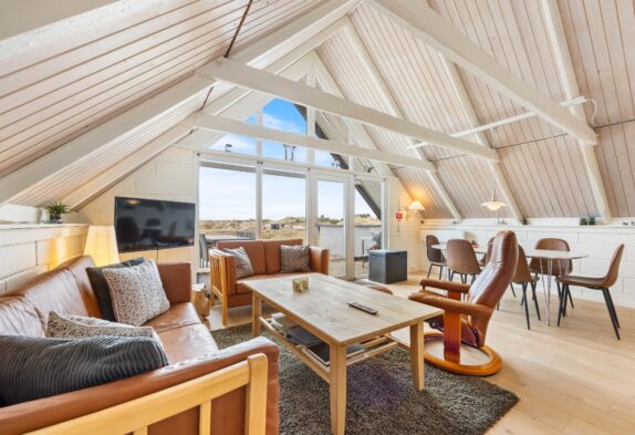 Vom Wohnbereich aus erreicht ihr die offene Terrasse mit Blick auf das 2120 m2 große Naturgrundstück und die Natur der Westküste Dänemarks. Auf der Terrasse stehen Gartenmöbel und Sonnenliegen und somit spricht nichts dagegen, den Tag entspannt am Haus zu verbringen und diesen mit einem leckeren Abendessen vom Grill ausklingen zu lassen. Wenn die Dunkelheit anbricht, könnt ihr vielleicht sogar das Licht vom Leuchtturm Lyngvig Fyr sehen – dem Wahrzeichen von Holmsland Klit.