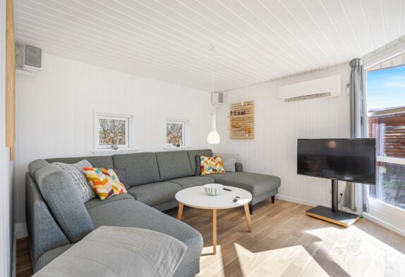 Das geräumige Wohnzimmer ist mit der Küche kombiniert und ist mit einem Fernseher mit Satellitenschüssel und einem Holzofen ausgestattet. Ihr könnt euch zurücklehnen und ein gutes Buch lesen, während ihr das schöne natürliche Licht und die Wärme der Sonne genießt, die durch die großen Fenster einfällt. Neben dem Holzofen sorgt auch eine energiesparende Luft-Luft-Wärmepumpe für ein angenehmes Raumklima. Der Geschirrspüler nimmt euch den Abwasch ab. Außerdem steht euch eine Waschmaschine und ein Trockner zur Verfügung, was schon zur Reduzierung des Reisegepäcks vor eurer Anreise sorgt.