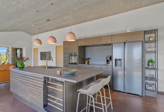 In der modernen, praktisch ausgestatteten Küche könnt ihr eure Lieblingsspeisen zubereiten. Hierfür stehen euch u. a. ein Induktionsherd mit Ofen und ein ideal ausgestatteter Arbeitsbereich zur Verfügung. Die Geschirrspülmaschine übernimmt gern den Abwasch.