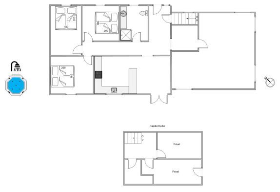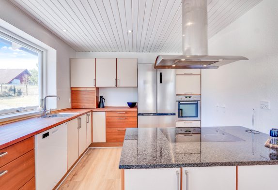 In der praktisch ausgestatteten Küche könnt ihr daraufhin eure Lieblingsspeisen zubereiten. Eine Geschirrspülmaschine übernimmt dann gern den Abwasch. So bleibt mehr Zeit für Beisammensein und Entspannung. Zur Nachtruhe könnt ihr euch in die drei Schlafzimmer zurückziehen – hier erwarten euch gemütliche Doppelbetten und somit ideale idealen Rückzugsorte zum Tanken neuer Energie.