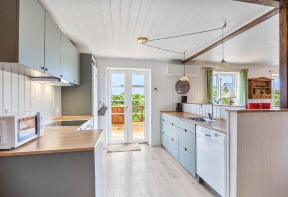 Neben dem Holzofen gibt es auch eine energiefreundliche Wärmepumpe, die für angenehme Temperaturen im Ferienhaus während eures Urlaubs sorgt. Zusätzlich verfügt das Ferienhaus über eine gute praktische Ausstattung mit Geschirrspüler, Waschmaschine und Trockner.