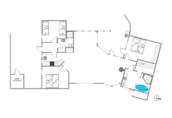 Darüber hinaus verfügt dieses Ferienhaus über 2 Badezimmer, welche jeweils mit Fußbodenheizung ausgestattet sind. Solltet ihr mit Freunden das Ferienhaus teilen, steht jeder Familie 1 eigenes Badezimmer zur Verfügung, was für die gewisse Privatsphäre sorgt. Im großen Badezimmer gibt es sowohl einen Whirlpool als auch eine Sauna, sodass ihr euren Urlaub so richtig genießen und vom Alltag entspannen könnt.