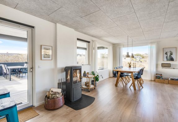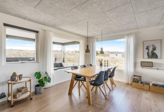 Dieses, durch die vielen Fenster, lichtdurchflutete Ferienhaus liegt nur wenige Meter entfernt von den Dünen auf Ternevej 6A im beliebten Ferienort Henne Strand an der dänischen Westküste. Eine Außensauna sowie eine Badetonne und eine Außendusche laden förmlich zu einem Wellnessurlaub ein und während ihr im warmen Badewasser sitzt, lauscht ihr dem Rauschen der Brandung – mehr Entspannung geht fast nicht. Gönnt euch diese kleine Auszeit vom Alltag und die teilweise überdachte und geschützte Terrasse lädt zu vielen Stunden an der frischen Nordseeluft ein.