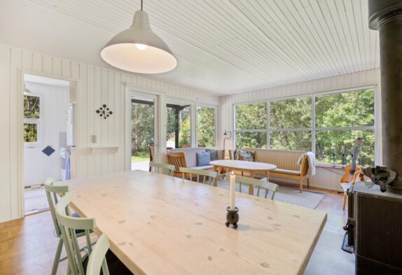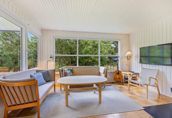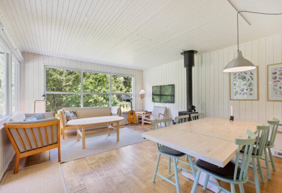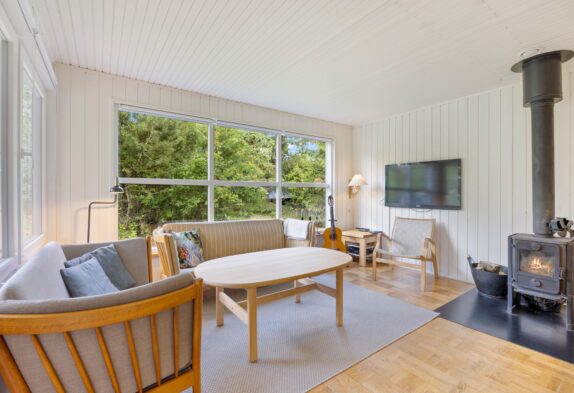 Im Wohnzimmer des Ferienhauses werdet ihr sicherlich viele schöne und gemütliche Urlaubsmomente verbringen. Hier habt ihr die Möglichkeit, lustige Spiele spielen und gute Filme auf dem Fernseher zu sehen. An regnerischen Tagen könnt ihr eure Lieblingsfilme und -serien streamen, da das Ferienhaus über einen Chromecast verfügt. Währenddessen sorgt der Holzofen mit seinem prasselnden Feuer für die typische Ferienhausatmosphäre.