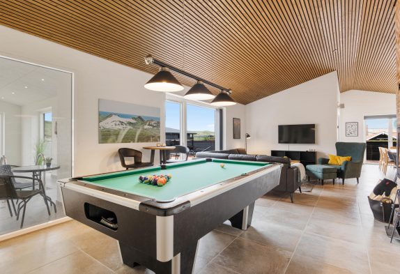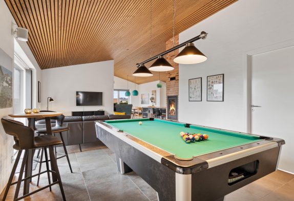 Entspannung, Natur und Spaß – das wird in diesem Urlaub großgeschrieben. Im Ferienhaus erwartet euch ein Pool mit direktem Zugang zur Terrasse und dem Außenwhirlpool. Im angrenzenden Aktivitätsraum habt ihr Zugang zur Sauna und zudem stehen euch hier ein Billardtisch zur Verfügung, damit ihr den Meister des Urlaubs erspielen könnt.