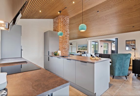 Nach einer Runde Schwimmtraining mit Gegenstromanlage könnt ihr es euch auf der gemütlichen Couch bequem machen und den Abend vor dem knisternden Kamin ausklingen lassen. Eine Fußbodenheizung und eine Wärmepumpe sorgen für eine angenehme Temperatur im Wohnbereich. Über Bluetooth könnt ihr zudem eure Lieblingsmusik abspielen.