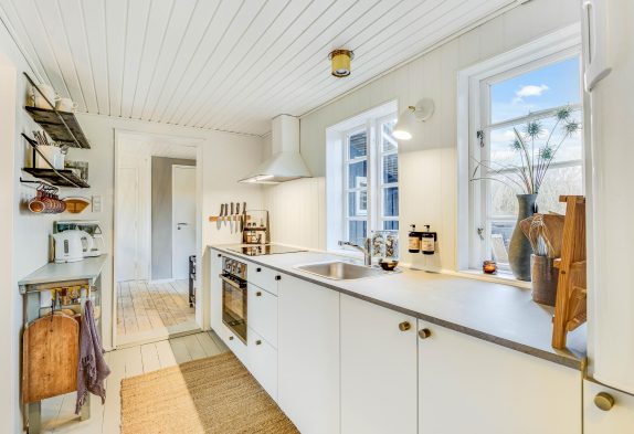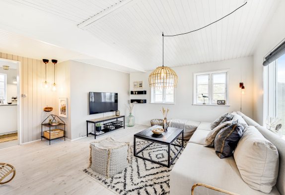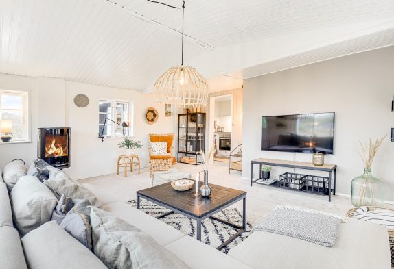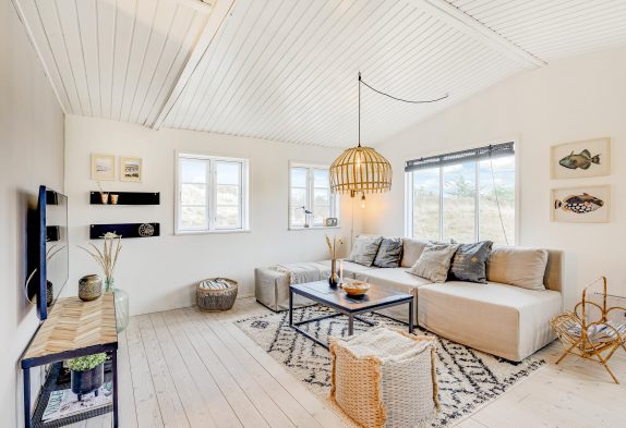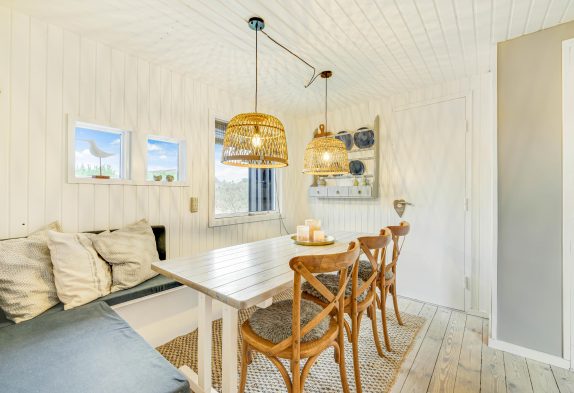 Das ältere und klassische Ferienhaus im Lærkedalen 26 lässt bereits beim Betreten richtige Urlaubsstimmung aufkommen. Viele kleine Details und die helle Einrichtung machen das Haus gemütlich und bieten euch genügend Platz, um mit der kleinen Familie einen entspannten Urlaub zu verbringen, auch euer Hund ist hier herzlich willkommen. Die Küche liegt abgetrennt vom Wohnzimmer und leckere Speisen warten darauf, hier zubereitet zu werden. Nachdem ihr gemeinsam den Abwasch bewältigt habt, könnt ihr es euch im Wohnzimmer auf dem Sofa gemütlich machen.