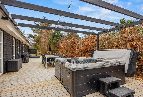 Im Jahr 2025 hat das Ferienhaus eine neue, große Terrasse und einen einladenden Außenbereich erhalten, in dem ihr eure Tage in vollen Zügen genießen könnt. Macht es euch in den Liegestühlen und Gartenmöbeln bequem, während die Kinder im Garten spielen. Hier findet ihr auch einen schönen Außen-Spa (ganzjährig geöffnet), eine Außendusche mit Warmwasser (nutzbar vom 1. April bis 31. Oktober), Beachvolleyball, Sandkasten, Ballspielplatz sowie ein Spielgerüst mit Schaukel und Rutsche.