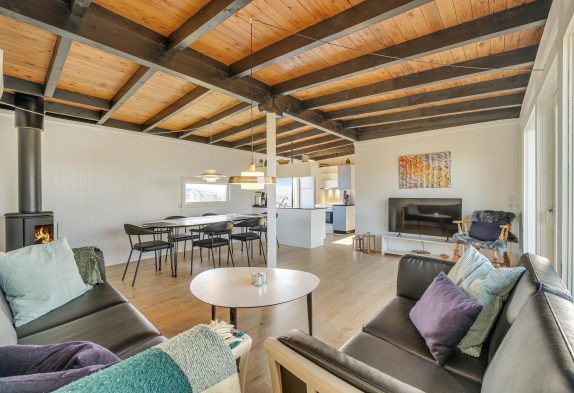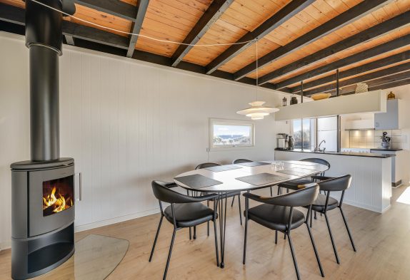 Der Wohnbereich mit offener Küche bildet das Herz des Ferienhauses und hier sorgt auch der wärmende Kamin für eine gemütliche Atmosphäre. Zusätzlich kann eine energiesparende Wärmepumpe genutzt werden, um eine angenehme Temperatur zu erreichen. Es gibt 3 deutsche Fernsehkanäle in diesem Ferienhaus.