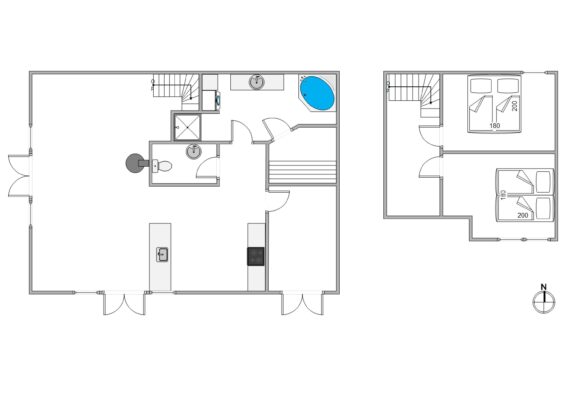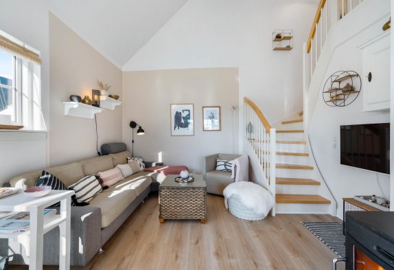 Bereits beim Betreten eurer Ferienwohnung im Badevej 20 wird man merken, dass hier mit Herz eingerichtet und dekoriert wurde. Die liebe und geschmackvolle Einrichtung zieht sich wie ein roter Faden durch die ganze Wohnung. Es besteht kein Zweifel, dass ihr euch hier sofort wie zu Hause fühlen werdet. Die 90m2 der Ferienwohnung verteilen sich über 2 Etagen. Der Wohnbereich mit offener Küche und das Badezimmer mit separater Toilette liegen im Erdgeschoss. Die beiden Schlafzimmer, die jeweils mit Doppelbetten ausgestattet sind, liegen im Obergeschoss.