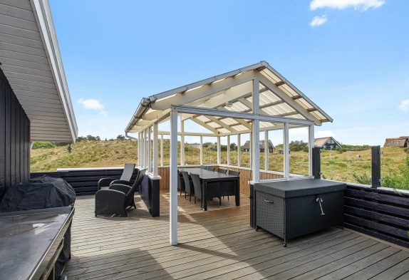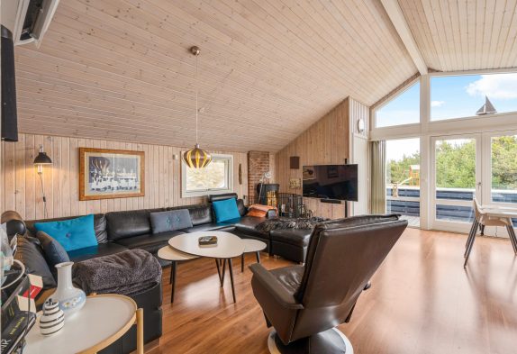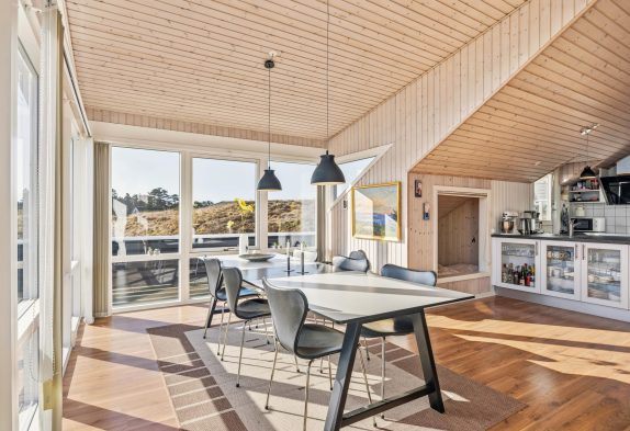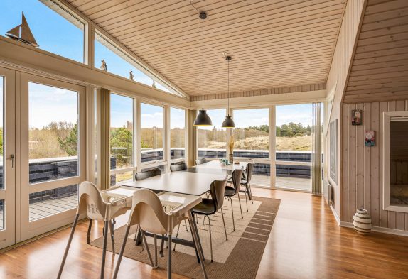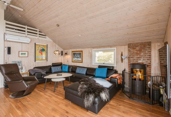 Auf einem wunderschönen Dünengrundstück, auf Nørre Meldbjergdal 11, liegt dieses gepflegte und mit Sauna, Kaminofen und Wärmepumpe gut ausgestattete Sommerhaus. Bis zu 6 Personen finden auf insgesamt 85 m² ausreichend Platz, um es sich gemütlich zu machen. Hervorzuheben ist auch der schöne und großzügige Terrassenbereich mit teilweise überdachter Fläche, sodass ihr hier viel Zeit an der frischen Luft verbringen könnt, unabhängig von der Witterung.