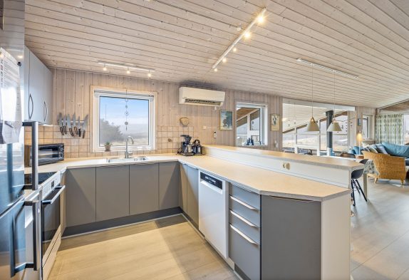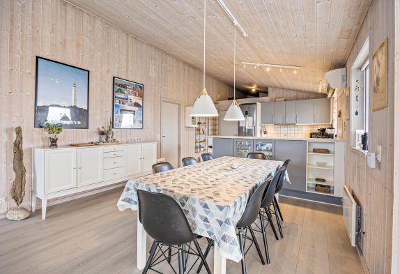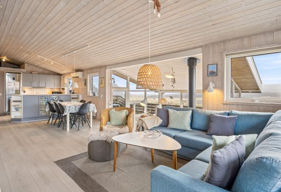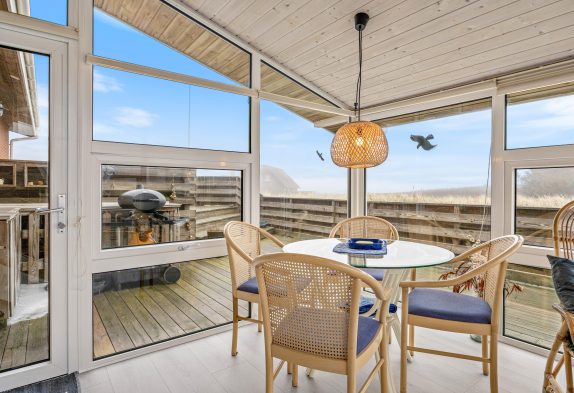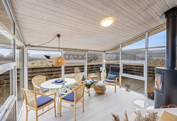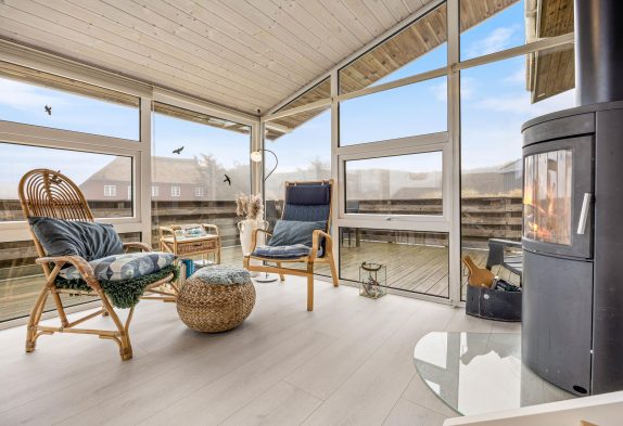 Das Ferienhaus ist schön und hell eingerichtet mit guten Möbeln und großen Fenstern im Wohnbereich, was für viel natürliches Licht sorgt. Die gut ausgestattete Küche lädt euch ein, hier köstliche Speisen zu zaubern. Es gibt einen kleinen gemütlichen Wintergarten, wo man an etwas kälteren oder regnerischen Tagen, einen gemütlichen Abend verbringen und den Tag ausklingen lassen kann. Wenn das Feuer im Holzofen lodert, kommt noch zusätzliche Ferienhausatmosphäre auf. Es gibt eine Fußbodenheizung im Wohnbereich und für ein angenehmes Raumklima sorgt die energiesparende Luft-zu-Luft Wärmepumpe.