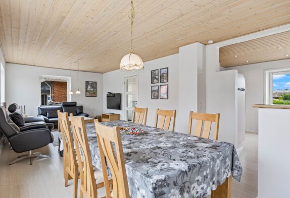 Das Ferienhaus ist auf mehrere Etagen verteilt. Das Zentrum des Sommerhauses bildet der gemütliche Wohnbereich, wo euch eine bequeme Couchecke zum Relaxen einlädt. Der angrenzende Esstisch lädt zu lustigen Spieleabenden mit der ganzen Familie ein.