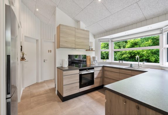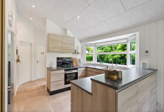 Der Kaminofen im Wohnzimmer sorgt für gemütliche Abende, während die große Couch euch zum Entspannen einlädt. Die großen Fenster ermöglichen euch einen herrlichen Blick in die Natur und lassen viel natürliches Tageslicht herein. Hier lässt es sich wunderbar lesen, Spiele spielen oder einfach nur die Ruhe genießen. Die Küche bietet alle modernen Annehmlichkeiten, darunter eine praktische Spülmaschine, die den Abwasch zum Kinderspiel macht. Hier kann mit Leichtigkeit für die ganze Familie gekocht werden und der offene Schnitt sorgt dafür das auch die Köche an Gesprächen und gemeinsamen Momenten teilhaben können.
