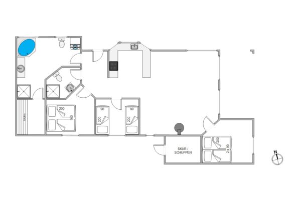 Euer Ferienhaus im Blåbærvangen 18 verfügt über insgesamt 3 Schlafzimmer wovon 2 Schlafzimmer mit jeweils 1 Doppelbett und das 3. Schlafzimmer mit 2 Einzelbetten ausgestattet sind. Die beiden Badezimmer des Ferienhauses sind modern und komfortabel ausgestattet. Die Fußbodenheizung sorgt an kühleren Tagen für wohlige Wärme während der Whirlpool nach einem aktiven Tag Entspannung verspricht. Zusätzlich bietet das Badezimmer eine Sauna welche ebenfalls zum Abschalten und Entspannen einlädt.