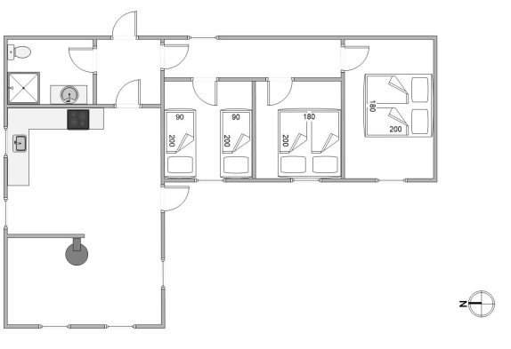 Dieses Ferienhaus hat eine praktische Aufteilung in Wohn- und Schlafbereich. Die drei Schlafzimmer befinden sich alle nebeneinander und sind aufgeteilt in zwei Zimmer mit Doppelbett und ein Schlafzimmer mit zwei Einzelbetten. Hier könnt ihr euch in den bequemen Betten herrlich erholen. Im praktischen Badezimmer findet ihr eine Dusche und auch eine Waschmaschine gibt es in diesem Ferienhaus.
