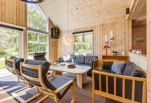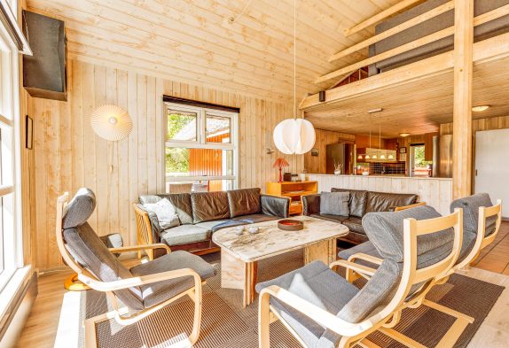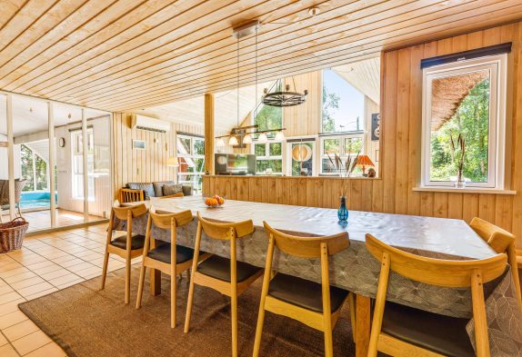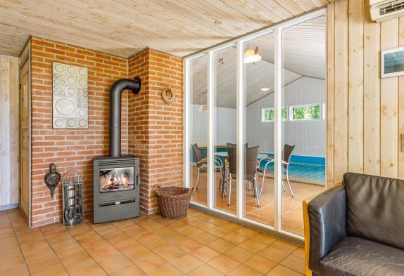 Die geschmackvolle Einrichtung ist hell und besonders ausgeführt in den 2 Etagen und 2 große Aufenthaltsräume/Wohnbereiche bieten Platz für jedermann. Eine spezielle Architektur mit Panoramafenstern Richtung Süden und ausgebauten Dachstuhl gibt es, insgesamt 44 m2 und sehr großzügig und hell geschnitten. Der Wohnbereich ist mit komfortablen Ledersofas, 70´´ 4K UHD LED Smart TB mit Chromecast, 5.1 surround sound mit Bluetooth, Parabol, Blue-ray Spieler, Stereoanlage mit CD-Spieler, kabellose Ladekabel für Smartphones und einen effektiven Kaminofen ausgestattet. Eine kräftige Wärmepumpe sorgt für angenehme Wärme im Winter und Aircondition im Sommer. Vom Wohnbereich aus habt ihr durch die Fensterpartie einen guten Überblick über den Poolbereich.
