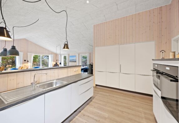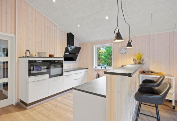 In der offenen Küche mit Tresenbereich, könnt ihr euch leckere Gerichte zubereiten. Hierfür stehen euch eine moderne Ausstattung und hochwertige Elektrogeräte zur Verfügung. Die Angler unter euch werden sich sicherlich über die zusätzliche Gefriertruhe im Hauswirtschaftsraum freuen. Hier findet ihr auch eine Waschmaschine und einen Trockner.