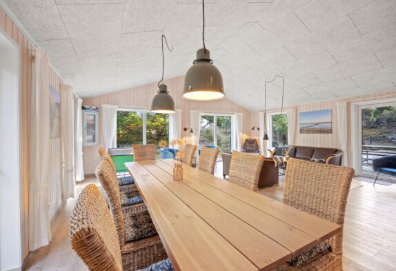 Euer Sommerhus liegt nicht weit vom der nächsten Einkaufsmöglichkeit entfernt und trotzdem seid ihr Mitten in der Natur. Am Morgen könnt ihr euch also leicht mit frischen Brötchen versorgen und ein gemeinsames Frühstück an der frischen Luft genießen. Der Abstand zum Badestrand Sønderstrand beträgt 2900 m.