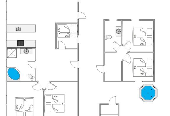 Die Wohn- und Schlafbereiche, sowie die Badezimmer sind mit einer Fußbodenheizung ausgestattet und zusätzlich könnt ihr die energiesparende Wärmepumpe zum Heizen nutzen. Die Aufteilung in Haupt- und Nebenhaus ist besonders für 2 Familien praktisch. Im Haupthaus findet ihr ein Badezimmer mit Whirlpool und Dusche, 2 Schlafzimmer mit Doppelbetten, sowie ein Schlafzimmer mit Etagenbett.