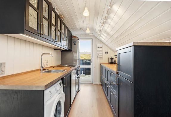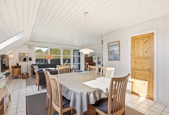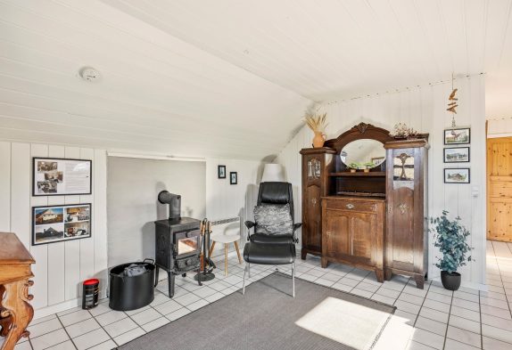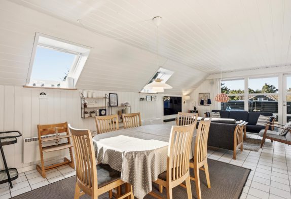 Der Stil und die Einrichtung von diesem Ferienhaus geben dem Ganzen eine ganz besondere Behaglichkeit. Die hellen schrägen Wände und die gemütliche, liebevolle Einrichtung sorgen für eine wohnliche Atmosphäre, in der man sich sofort zu Hause fühlt. Ihr könnt es euch hier vor dem lodernden Feuer im Kaminofen gemütlich machen, gemeinsam kochen, oder zu einem gemeinsamen Spieleabend zusammenkommen. Wenn das Feuer im Kamin in den kälteren Jahreszeiten nicht ausreicht, kann das Haus auch schnell mit einer energiesparenden Wärmepumpe aufgeheizt werden.