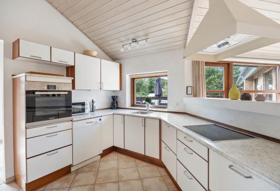 Im großzügigen Wohnbereich mit offener Küche und einem langen Esstisch, kommt ihr für die gemeinsamen Stunden im Urlaub zusammen. Das edle, skandinavische Ambiente sorgt für die richtige Ferienstimmung. In der großen Küche können alle bei den Vorbereitungen für das Abendessen mithelfen, oder schon mal bei einem leckeren Aperitif ein wenig Gesellschaft leisten.