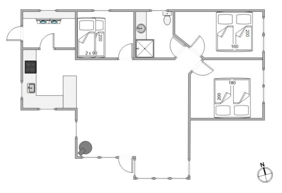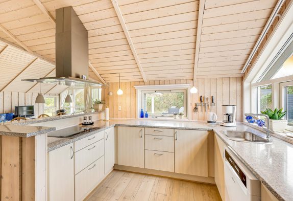 In der offenen Küche findet ihr alles, um einen gemeinsamen Kochabend zu veranstalten. Die Küchenausstattung in diesem Ferienhaus geht weit über den Ferienhausstandard hinaus und wird von den Gästen immer wieder als besonders positiv hervorgehoben. Die vielseitige Ausstattung lässt keine Wünsche offen. Das gepflegte moderne Badezimmer ist mit einer Dusche und Fußbodenheizung ausgestattet. Die drei Schlafzimmer sind gut im Ferienhaus verteilt. Auf der einen Seite liegt das Zimmer mit dem Doppelstockbett – ideal für eure Kinder geeignet. Hier findet ihr auch zwei Hochstühle von Tripp Trapp, wenn ihr kleinere Kinder habt. Auf der anderen Seite findet ihr zwei Schlafzimmer mit gemütlichen Doppelbetten. Diese sind mit hochwertigen Viscoschaummatratzen ausgestattet, die sich eurem Körper anpassen und rückenfreundliche, wertvolle Unterstützung und Entlastung spenden, sodass ihr erholsam schlafen könnt. Auch in den Schlafzimmern wurde mit Einbauschränken und Abdunklungsrollos an alles gedacht, um euren Urlaub so erholsam wie möglich zu machen.