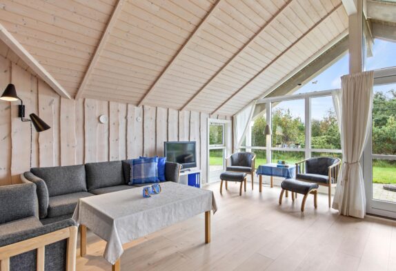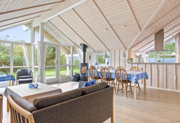In diesem mit viel Liebe zum Detail und Herzblut eingerichteten und gepflegten Ferienhaus fühlt man sich direkt willkommen. Im großzügigen und offen gestalteten Wohn-Essbereich könnt ihr gemütliche Stunden verbringen und euch abends vorm Kamin entspannen. Der Wohn-Essbereich ist dank der breiten Glaspartie, die bis zum Giebel reicht, lichtdurchflutet, so dass ihr einen tollen Ausblick in die Natur habt. Rehe kommen oft vorbei und man kann auch je nach Jahreszeit Stare direkt vom Esstisch aus sehen. Für hyggelige Stunden steht in diesem Ferienhaus eine Auswahl an Büchern für euch bereit und im Kinderzimmer finden sich etliche Spiele für die ganze Familie. Oder wie wäre es mit einem gemeinsamen Fernsehabend? Hier steht euch auch ein Flachbildfernseher, der mit einem Google Chromecast ausgestattet ist, zur Verfügung.