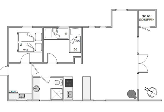 Das Ferienhaus hat insgesamt zwei Schlafzimmer, eins mit einem Doppelbett und das andere mit zwei Einzelbetten. Umgeben von der Ruhe der Natur und des Waldes könnt Ihr Euch richtig ausschlafen und neue Energie tanken. Für die richtige Raumtemperatur in eurem Ferienhaus sorgt die energiesparende Wärmepumpe.