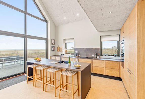 Im Gl Færgevej 11 findet ihr dieses Ferienhaus aus dem Jahr 2023 mit Platz für bis zu 18 Personen. Die offene Küche mit Kücheninsel in Verbindung mit dem Wohn- und Essbereich wird der Treffpunkt der Gruppe sein. Neben reichlich Platz für die Zubereitung herrlicher Mahlzeiten und geselliges Beisammensein gibt es auch einen Panoramablick direkt auf das herrliche Wattenmeer.