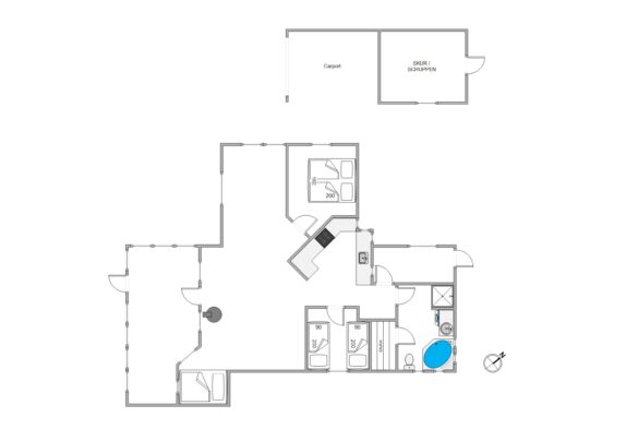 Husfold 4 befindet sich in der idyllischen Feriensiedlung Bork Havn am Ringkøbing Fjord und bietet den idealen Rahmen für eine erholsame Auszeit mit der Familie. Das großzügig gestaltete Ferienhaus ist hell und freundlich eingerichtet und sorgt dafür, dass ihr euch rundum wohlfühlt. Hier erwarten euch zahlreiche Annehmlichkeiten sowohl drinnen als auch draußen: Eine energiesparende Wärmepumpe, ein Kaminofen, eine Sauna und ein Whirlpool garantieren höchsten Komfort, während ein Carport für euer Auto zur Verfügung steht. All dies trägt dazu bei, dass ihr unvergessliche Urlaubserinnerungen sammeln könnt.