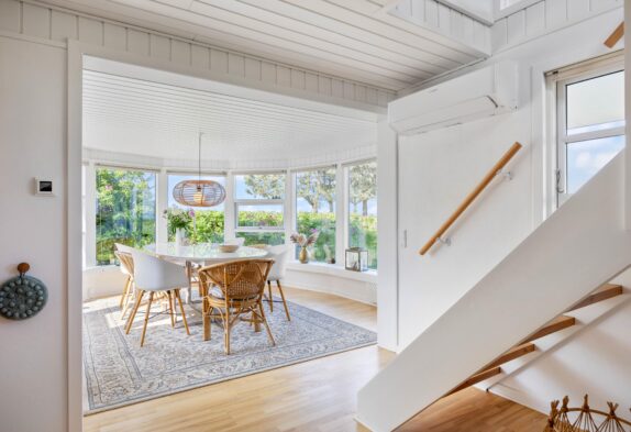 Die restlichen 2 Schlafzimmer befinden sich im ersten Stock des Ferienhauses. Eines dieser Schlafzimmer ist mit einem Doppelbett ausgestattet, das andere mit 1 Einzelbett. Im ersten Stock gibt es auch ein gemütliches Fernsehzimmer, von dem aus ihr ebenfalls einen absolut tollen Blick auf den Nissum Fjord habt sowie eine Gästetoilette.