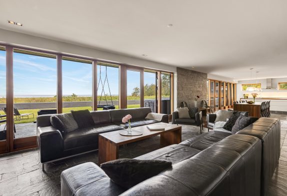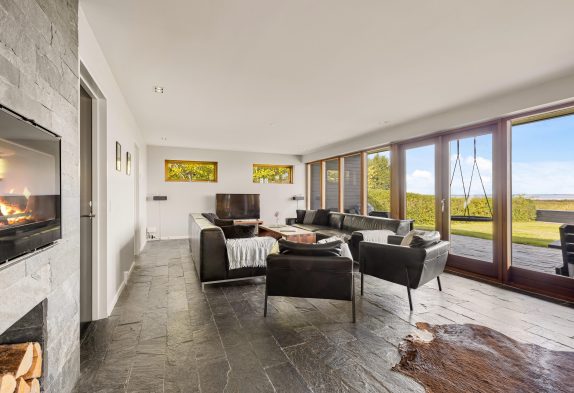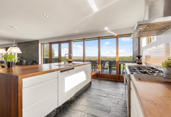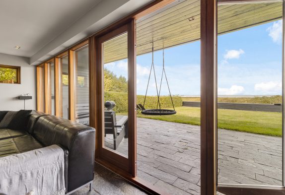 Die gesamte Ostseite des Hauses bildet einen großen, offenen Wohnbereich, in dem Küche, Essplatz und Wohnzimmer harmonisch ineinander übergehen. Hier könnt ihr viele gemütliche Stunden gemeinsam verbringen – während das Essen zubereitet wird, spielen die Kinder Brettspiele am Esstisch. Nach dem Abendessen übernimmt der Geschirrspüler, sodass Zeit für einen entspannten Filmabend bleibt. Es stehen dänisches TV und Chromecast zur Verfügung und der Kaminofen sorgt besonders an kühleren Tagen für wohlige Atmosphäre.