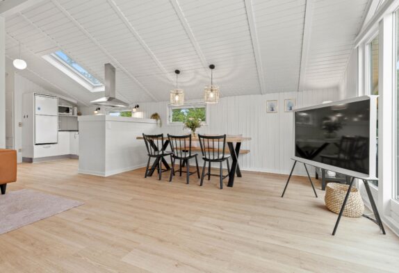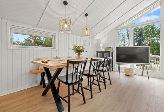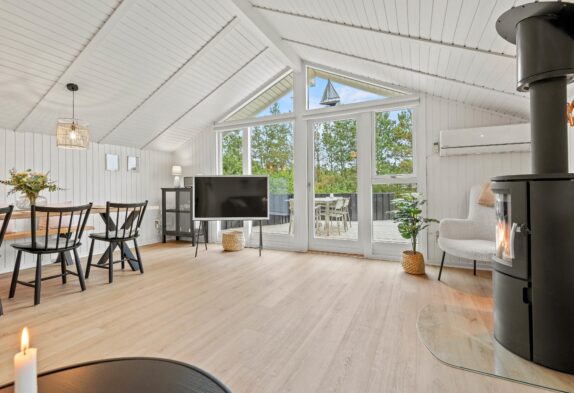 Die helle Einrichtung und der traumhafte Lichteinfall durch die großen Fensterfronten geben diesem Ferienhaus ein besonders gemütliches Ambiente. Hier werdet ihr euch bestimmt sofort wohl fühlen.