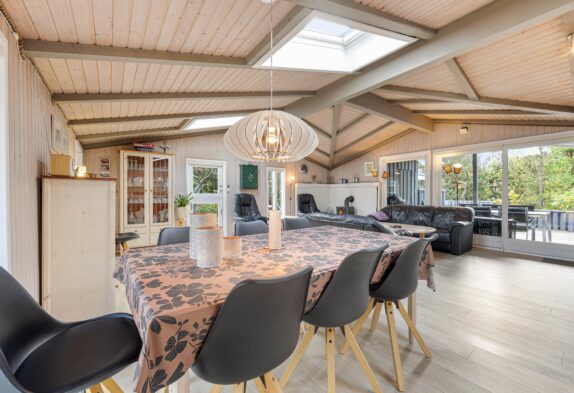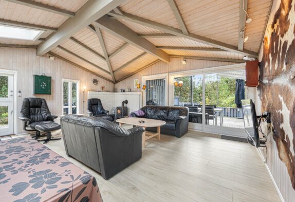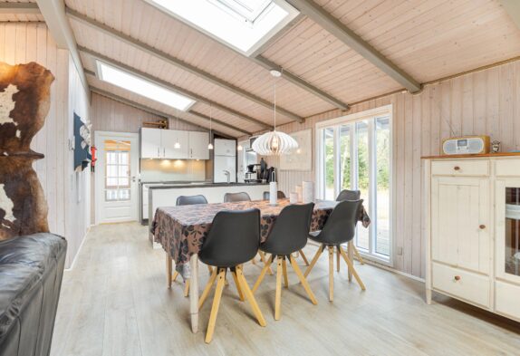 Mit 104m² bietet das Ferienhaus ausreichend Platz für bis zu 8 Personen und ist der perfekte Ort für einen entspannten Aufenthalt. Der offene Wohnbereich ist das Herzstück des Ferienhauses – hier könnt ihr euch versammeln und die gemeinsame Zeit genießen. Der Kaminofen sorgt für eine warme, gemütliche Atmosphäre, die euch direkt willkommen heißt. Ob bei einem geselligen Abend mit Freunden oder beim Entspannen nach einem ereignisreichen Tag, hier fühlt ihr euch gleich wie zuhause.