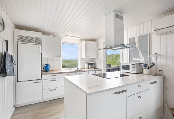 In diesem, mit viel Liebe eingerichteten Ferienhaus, fühlt man sich direkt wohl. Der Innenbereich wurde im Frühjahr 2024 renoviert. Durch einen kleinen Flur gelangt man direkt in den offenen und hellen Wohnbereich mit Essplatz und angrenzender Küche. Auf der gemütlichen Couch könnt ihr bei einem gemeinsamen Filmabend entspannen und die Wärme des Kamins genießen. Oder ihr veranstaltet einen gemeinsamen Kochabend. In der gut ausgestatteten, modernen Küche findet ihr unter anderem eine Spülmaschine, eine Mikrowelle sowie einen Kühlschrank mit Gefrierfach.