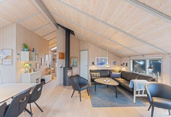 Im Wohnbereich des Sommerhauses könnt ihr gemeinsame Stunden vorm Kamin verbringen. Schaut einen Film oder veranstaltet einen geselligen Spieleabend am Esstisch. Zusätzlich zum Kamin, könnt ihr hier auch die energiesparende Wärmepumpe zum Heizen nutzen. In der praktisch gestalteten Küche findet ihr alles, um ein leckeres Menü zu zaubern. Zur Ausstattung gehören unter anderem ein Geschirrspüler, eine Mikrowelle und ein Kühlschrank mit 40 l Gefriermöglichkeit.