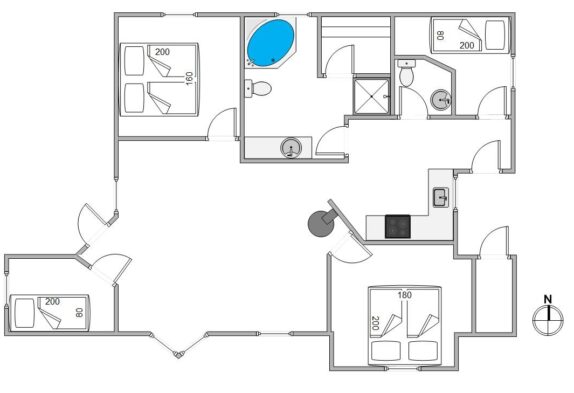 Durch die zusätzliche Gästetoilette könnt ihr euch morgens gut aufteilen und Stau vorm Bad vermeiden. Die gemütlichen Schlafzimmer teilen sich auf in 2 Räume mit Doppelbetten und 2 Räume mit jeweils einem Einzelbett. Hier könnt ihr euch gut erholen und seid fit für den nächsten Urlaubstag.