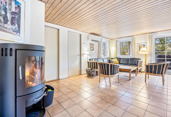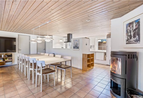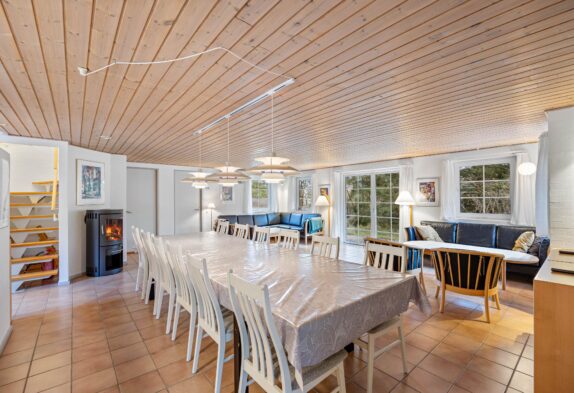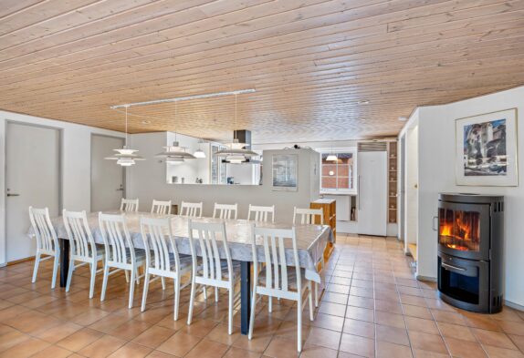 Der große Wohn-Essbereich strahlt viel Gemütlichkeit aus und ist Dank der Fußbodenheizung, die durch eine Wärmepumpe beheizt wird, energiesparend beheizbar. Am Esstisch könnt ihr gemeinsam speisen oder auch einen Spieleabend veranstalten. Dabei könnt ihr für die besondere hyggelige Atmosphäre auch den Kamin befeuern und euch am knisternden Feuer erfreuen. In der offenen, gut ausgestatteten Küche findet ihr alles, um eine köstliche Mahlzeit zuzubereiten.
