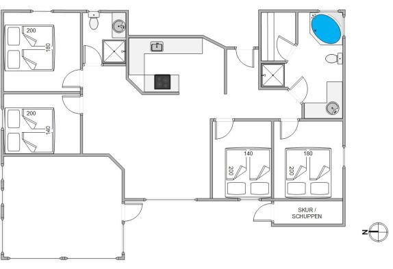 Die offene Küche ist praktisch ausgestattet und bietet alles, um ein leckeres Abendessen zu zaubern. Probiert doch mal ein skandinavisches Rezept aus. Um den Abwasch danach kümmert sich der integrierte Geschirrspüler. Ihr könnt den Abend also entspannt bei einem ausgiebigen Bad im Whirlpool oder mit einem Saunagang ausklingen lassen. In beiden Bädern befinden sich sowohl eine Dusche als auch eine Fußbodenheizung. Ihr müsst also keine kalten Füße befürchten.