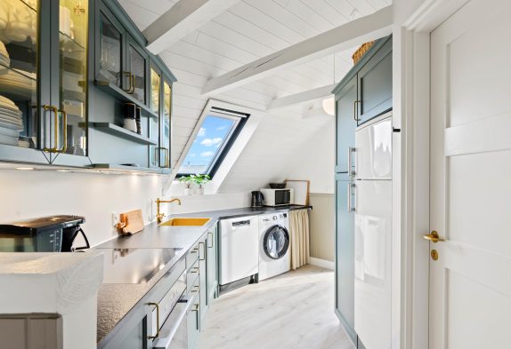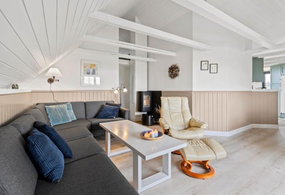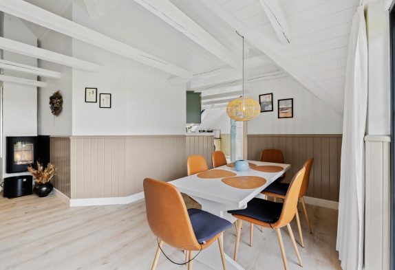 Die Ausstattung dieses liebevoll renovierten Sommerhauses ist komfortabel. Die geschmackvolle Küche ist mit einem Geschirrspüler ausgestattet, euch steht eine Waschmaschine zur Verfügung, was gerade bei längeren Aufenthalten sehr von Vorteil ist, und der Wohnbereich bietet euch einen Kamin! Gemütliche Temperaturen sowie eine schöne Urlaubsatmosphäre sind hier garantiert. Alternativ sorgt eine moderne Wärmepumpe für angenehme Temperaturen.